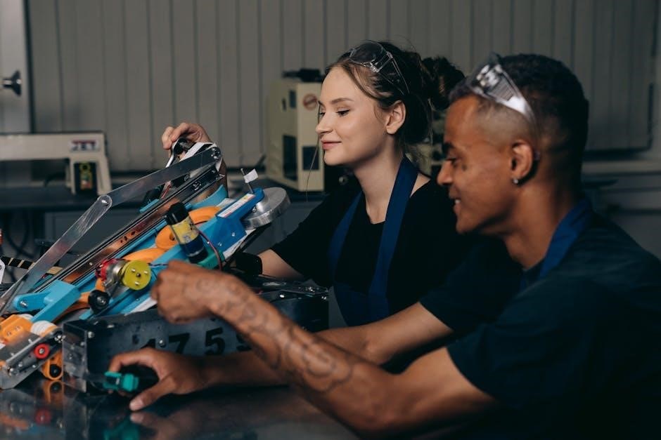 Proper installation and maintenance of Manitowoc ice machines are critical to ensure safe and efficient operation; Always follow the installation manual and manufacturer guidelines to avoid potential hazards․ Ensure the machine is installed on a level surface and securely fastened to prevent tipping․ Use only genuine Manitowoc parts to maintain safety and performance standards․ During maintenance, inspect electrical connections, water lines, and drain systems for damage or leaks․ Regularly clean condenser coils to prevent overheating and ensure proper airflow․ Always disconnect power before performing maintenance tasks․ Use appropriate tools and avoid over-tightening components․ Keep the machine away from direct sunlight and heat sources․ Proper ventilation is essential to prevent moisture buildup and electrical issues․ Adhere to these safety practices to ensure reliable operation and longevity of the equipment․